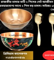 ২ পিস তামার বাটি Black এবং 2 পিস বড় steel golden Spoon ( 100%Copper) 19 Cm (১ পিস প্রিন্ট ১ পিস প্রিন্ট ছাড়া)