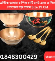 3 পিস তামার বাটি Black এবং 3 পিস বড় Steel Golden চামস (100% Copper) Bowl 19 Cm (১ পিস প্রিন্ট ২ পিস প্রিন্ট ছাড়া)