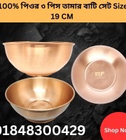3 পিসতামার বাটি All Copper 100% তামার (100% Copper) Bowl 19 Cm