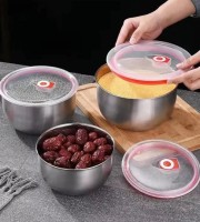 Premium Stainless Steel Food Box with Plastic Lids 3 pcs set