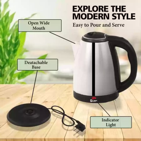 Electric Kettle – Silver and BlackElectric Kettle Category: Electric Kettle .Product Type : Electric kettle Color : White Power : 1850-2200W Area of Use Kitchen Capacity (L) 1.