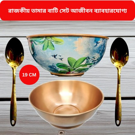2 পিস বাটি 100% তামার বাটি Sky ( 100%Copper) Bowl 19 Cm (১ পিস প্রিন্ট ১ পিস প্রিন্ট ছাড়া)