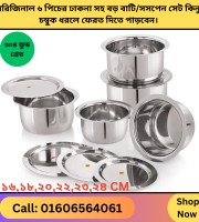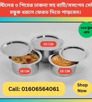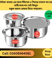 stainless steel ৩ পিচের ঢাকনা সহ বড় বাটি/সসপেন সেট 22,23,24 CM